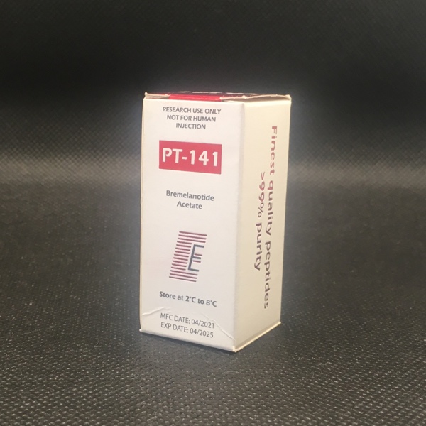PT-141 jest izomerem Melanotanu II, bez grupy amidowej (C-koniec), który chroni przed oparzeniami słonecznymi i poprawia libido. PT-141 nie wpływa na układ naczyniowy, a jego selektywne działanie ogranicza się do aktywacji i stymulacji receptorów melanokortyny w celu zwiększenia libido i atrakcyjności seksualnej. PT-141 jest sterylnym, białym, liofilizowanym proszkiem przeznaczonym do wstrzyknięć podskórnych lub domięśniowych, po rozpuszczeniu w jałowej wodzie.
